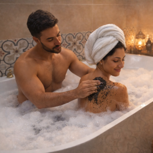 Vítejte v Marrakéši, kde vzduch voní kořením a večery patří smyslům. Příběh vás provází orientálními rituály, doteky a okamžiky, které patří jen vám dvěma. Zážitek, který se prožívá všemi smysly.